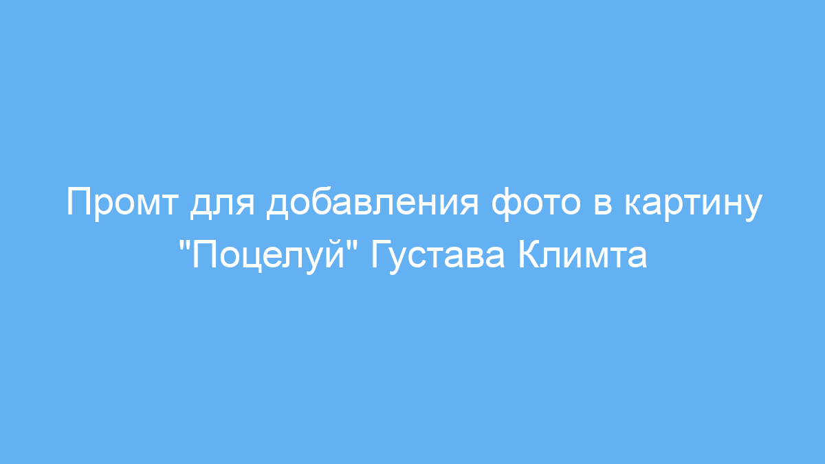 Данный промт предназначен для пользователей, которые хотят вставить своё фото в знаменитую картину «Поцелуй» Густава Климта. Он позволяет искусственно объединить ваше изображение с художественным стилем полотна, используя характерные золотые узоры и мягкие линии, создавая романтическую атмосферу. Такой подход помогает быстро и красиво оформить личные фотографии или подарки, а также создавать уникальный арт-контент для соцсетей и презентаций.