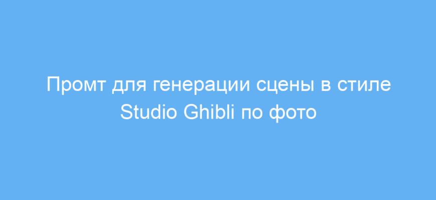 - Название Studio Ghibli задаёт общий стиль, но можно дополнить описание словами «акварель», «мягкие тени», чтобы усилить эффект.