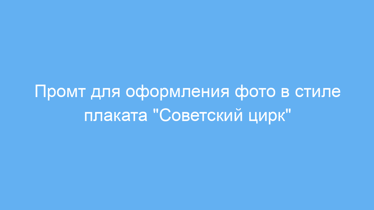 Использование данного промта помогает быстро и эффективно преобразить фото в стильный советский цирковой плакат. Это экономит время и силы, позволяя получить яркий рекламный или художественный материал без глубоких навыков в дизайне.