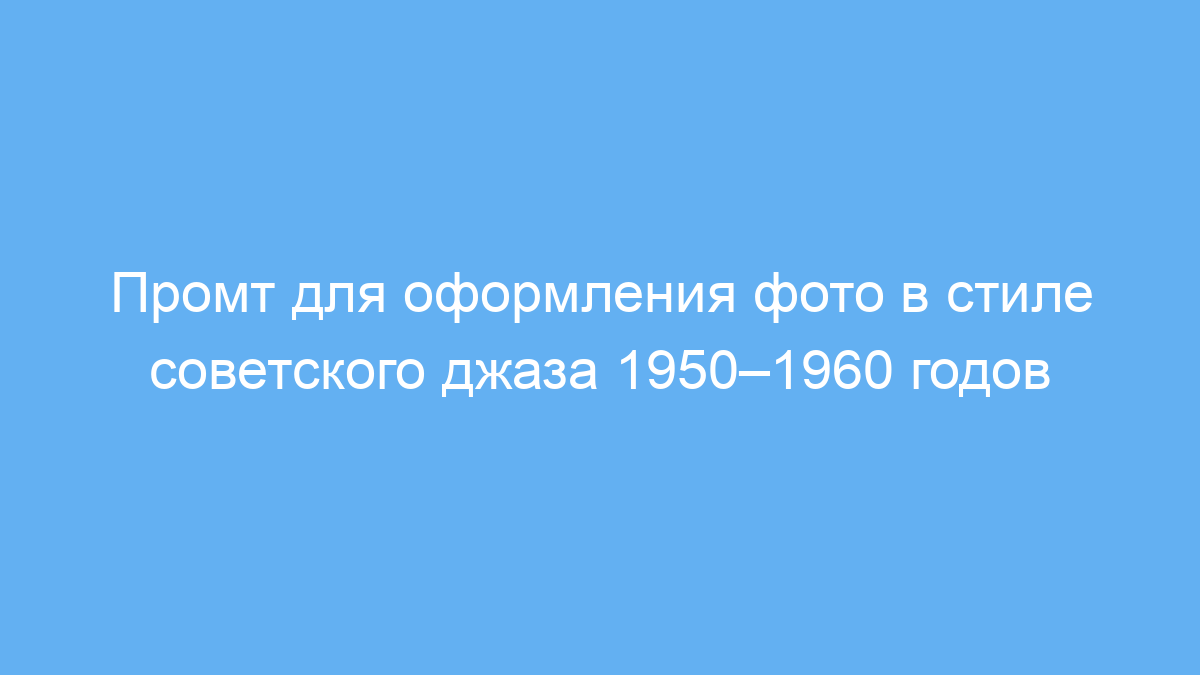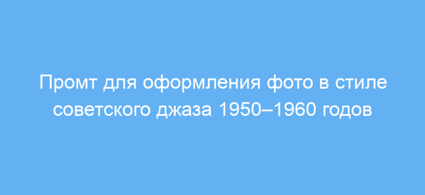 Этот промт создан для тех, кто хочет быстро оформить фотографию в уникальном стиле советского джаза середины XX века. Он особенно полезен дизайнерам, блогерам, музыкантам и историкам, которые работают с визуальным контентом и хотят передать дух эпохи с помощью нейросетей.