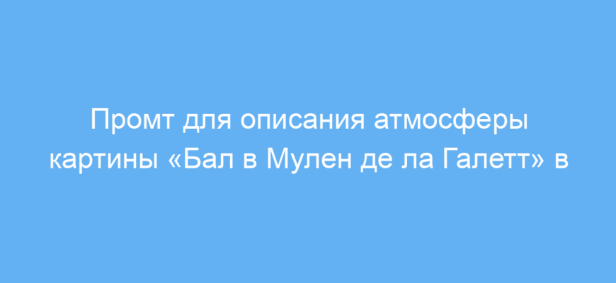 Вообрази себя в картине «Бал в Мулен де ла Галетт» Ренуара. Расскажи о праздничной атмосфере, сосредоточив внимание на ярком освещении, размытых контурах и впечатлении живого движения, следуя традициям импрессионизма. |