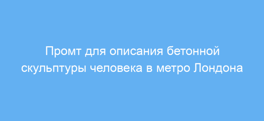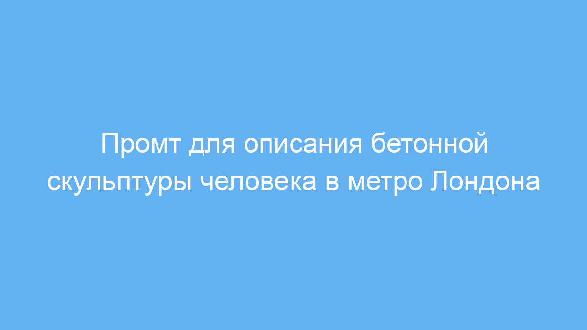 Этот промт создан для авторов текстов, дизайнеров, специалистов по искусственному интеллекту и всем, кому требуется подробно и ярко описать необычные арт-объекты. В частности, он помогает получить качественное описание бетонной скульптуры человека, встроенной в стену лондонского метро с табличкой и заданным текстом. Такое описание может пригодиться в пресс-релизах, экскурсиях, блогах или учебных проектах.