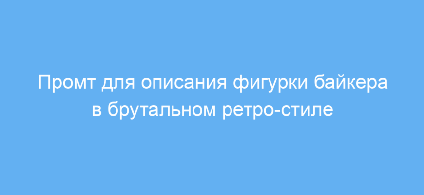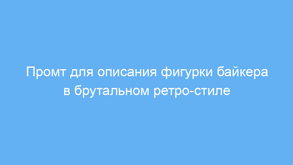 Этот промт предназначен для тех, кто хочет быстро и четко получить описание игрушки — в данном случае фигурки байкера в кожаном жилете на фоне шоссе. Он подходит дизайнерам, продавцам сувениров, контент-менеджерам и всем, кто работает с визуальными образами для интернет-магазинов, каталогов или соцсетей.
