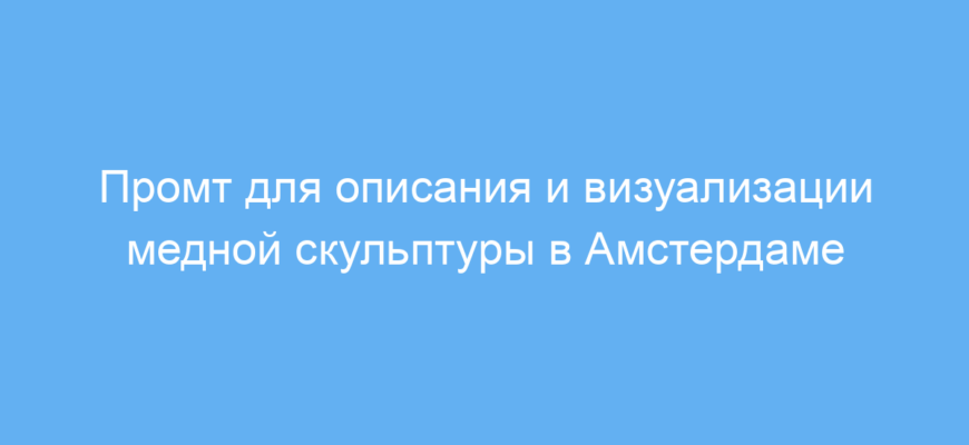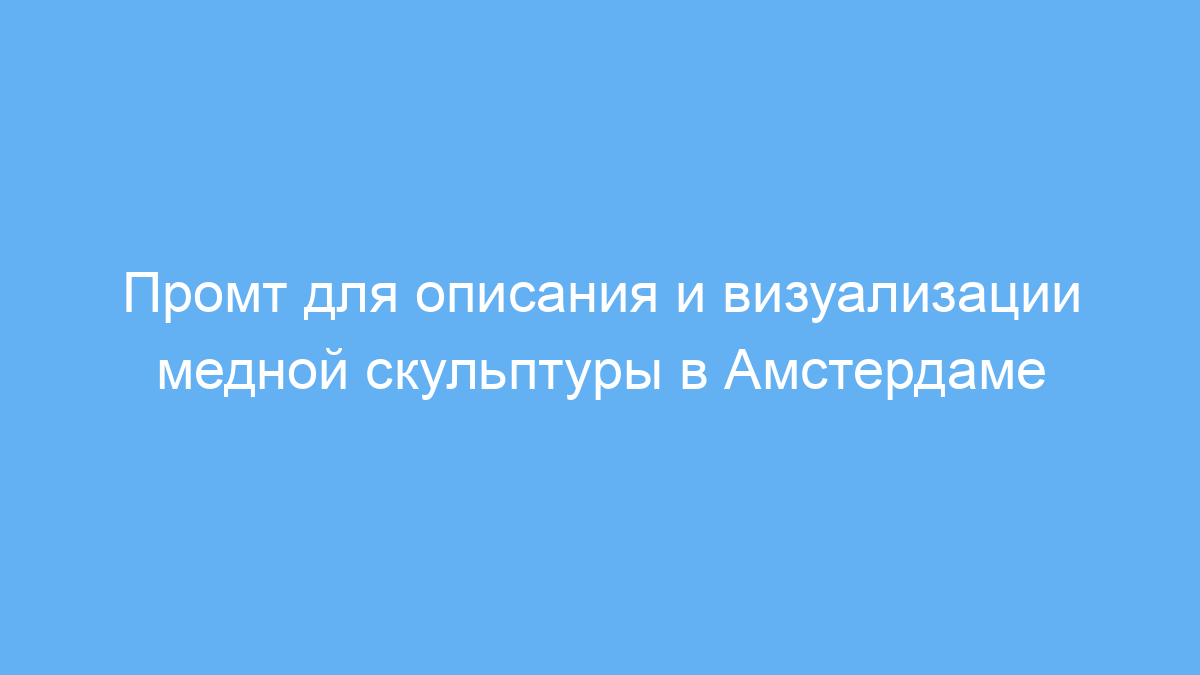 Использование данного промта значительно упрощает создание концептуальных описаний и визуализаций медных скульптур в амстердамском порту с элементами ретро и эффектом ржавчины. Он экономит время и помогает добиться чёткого, атмосферного результата как в текстовом, так и в графическом формате.