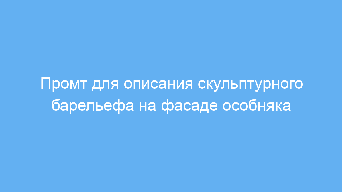Промт помогает быстро и понятно описать сложный визуальный объект — скульптурный барельеф на фасаде, учитывая стиль съёмки и текст на табличке. Это экономит время и позволяет создавать качественные тексты для разных задач, от художественных описаний до профессиональной документации.