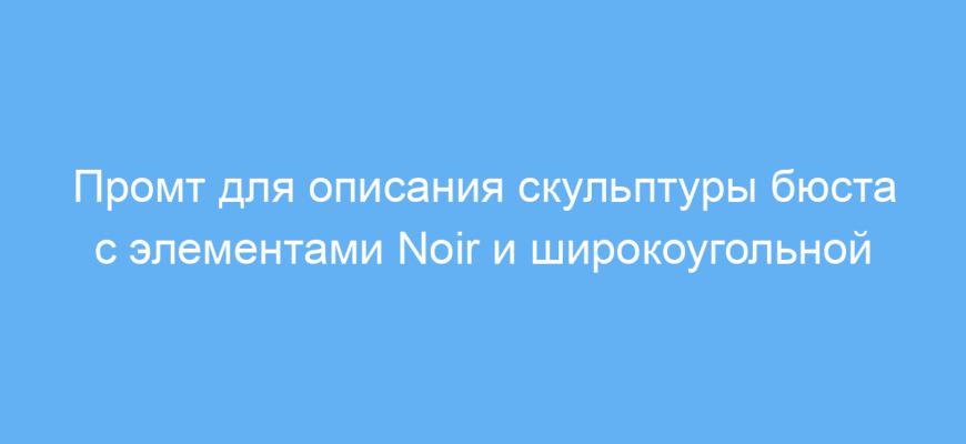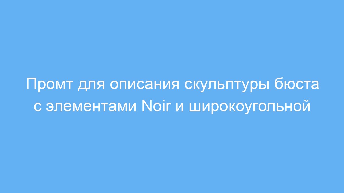 Промт помогает решить задачу получения яркого, атмосферного и точного описания скульптуры с учетом технических особенностей съемки (широкоугольный объектив) и стилистики (Noir-фотография). Это уменьшает необходимость самостоятельного комбинирования сложных терминов и позволяет получать более релевантный и интересный результат за один запрос.