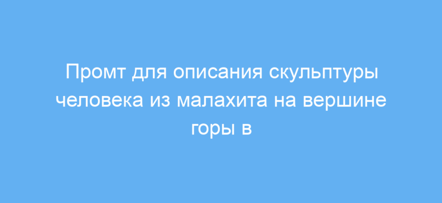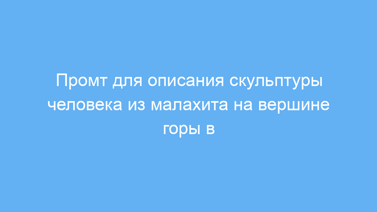 Создай описание скульптуры человека из малахита, установленной на вершине горы в Альпах. Учти, что на скульптуре выгравирован следующий текст: [ТЕКСТ]. Опиши внешний вид, атмосферу и символизм этой композиции. |