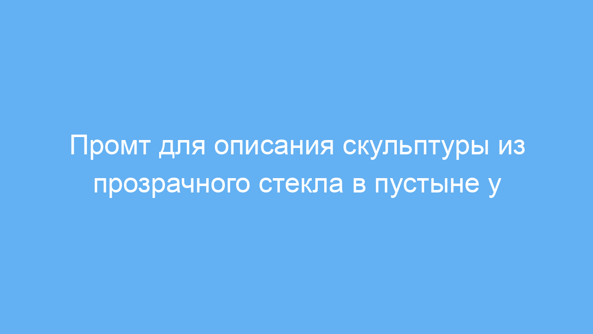Этот промт предназначен для пользователей нейросетей, которые хотят получить подробное визуальное описание художественной скульптуры из прозрачного стекла, расположенной в пустынной местности около Рио-де-Жанейро. Он особенно полезен дизайнерам, видеооператорам, художникам и маркетологам, которым нужно быстро сгенерировать атмосферное описание для визуального контента с дрон-кадрами и киношной стилизацией.