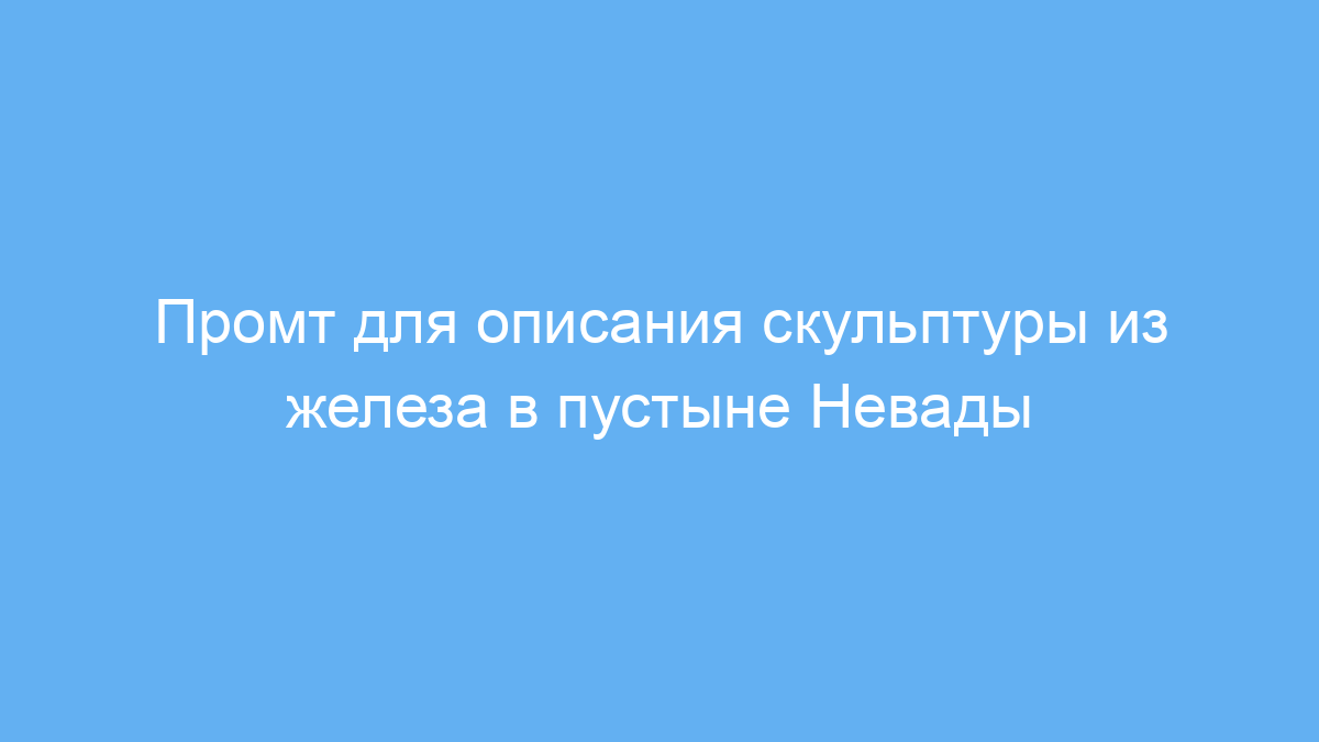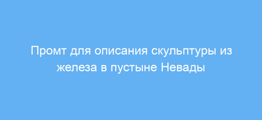 Этот промт создан для пользователей нейросетей, которым требуется визуальное или текстовое описание уникального объекта — скульптуры человека из железа, частично разрушенной и расположенной в пустыне Невады. Он будет полезен художникам, сценаристам, дизайнерам, блогерам и копирайтерам, которые хотят получить детальный и атмосферный текст или сгенерировать изображение этой сцены.
