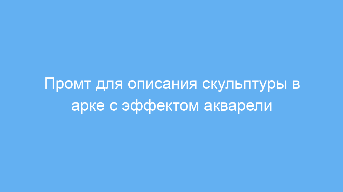 Он решает задачу простого и структурированного описания уникального объекта — скульптуры внутри деревянной арки в заброшенном промышленном интерьере. Промт помогает создать образ, используя художественные приемы (эффект акварели) и технические подробности (макро-объектив), а также включает упоминание таблички с конкретным текстом. Такой подход экономит время, снижает неоднозначность в описании и улучшает креативный процесс.