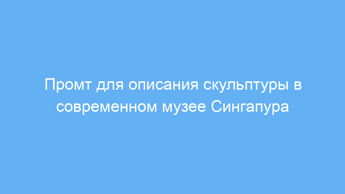 Этот промт создан для тех, кто хочет получить подробное и художественное описание скульптуры из глазурованной керамики, установленной на пьедестале в современном музее Сингапура.