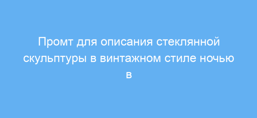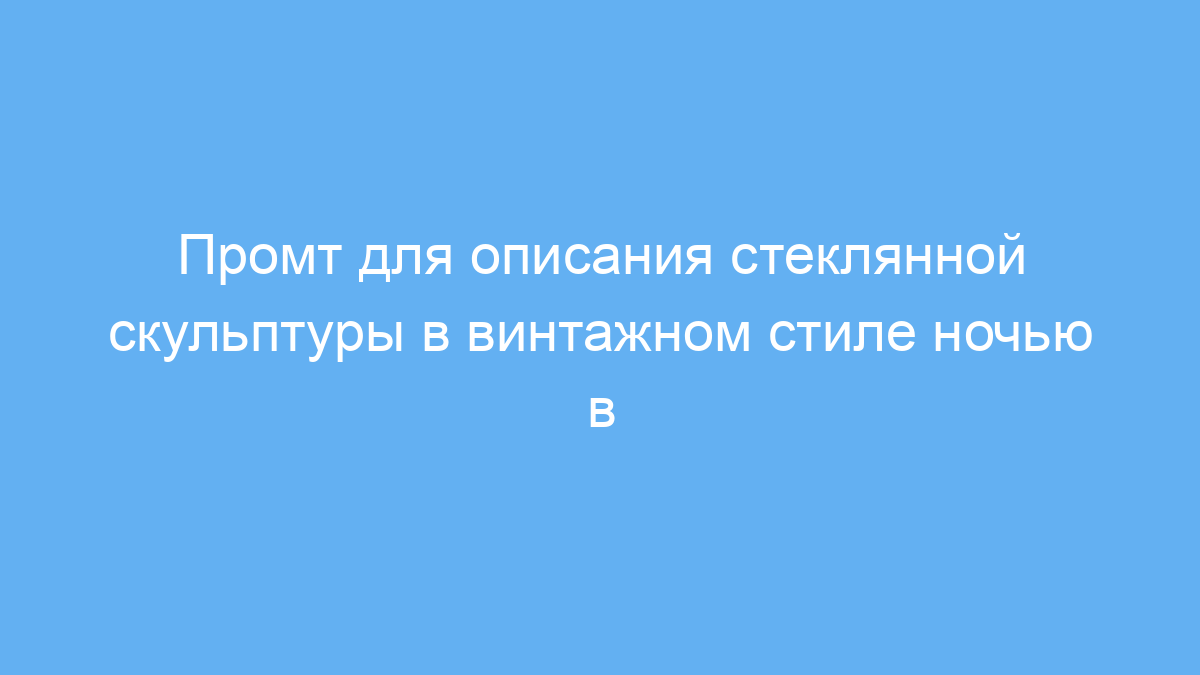 Этот промт предназначен для тех, кто хочет быстро и качественно получить подробное описание художественного объекта — в данном случае скульптуры из прозрачного стекла в винтажном стиле, расположенной на берегу реки в Нью-Йорке ночью. Он помогает дизайнерам, писателям, маркетологам и создателям контента сформулировать четкое и атмосферное описание, которое можно использовать в текстах, презентациях, соцсетях или визуальных проектах.