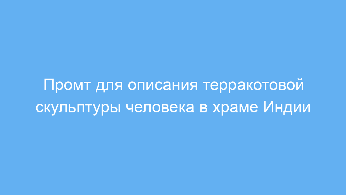Данный промт предназначен для пользователей, которым необходимо получить подробное описание терракотовой скульптуры человека, встроенной в стену храма в Индии. В первую очередь, это специалисты по истории искусства, культурологи, студенты, а также создатели контента и исследователи, которым важен глубокий исторический и художественный контекст.