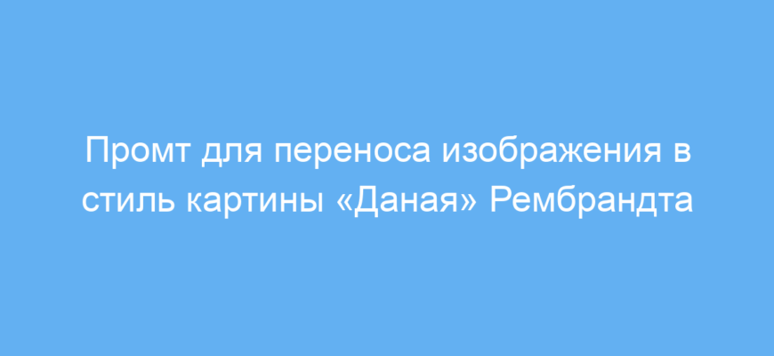 Этот промт создан для тех, кто хочет преобразить свои изображения, придав им художественный вид, напоминающий шедевр мастера Рембрандта — картину «Даная». Он особенно полезен художникам, дизайнерам, фотографам и всем, кто работает с визуальным контентом и стремится создать эффектное, атмосферное изображение с тёплым золотистым освещением и мягкой текстурой.