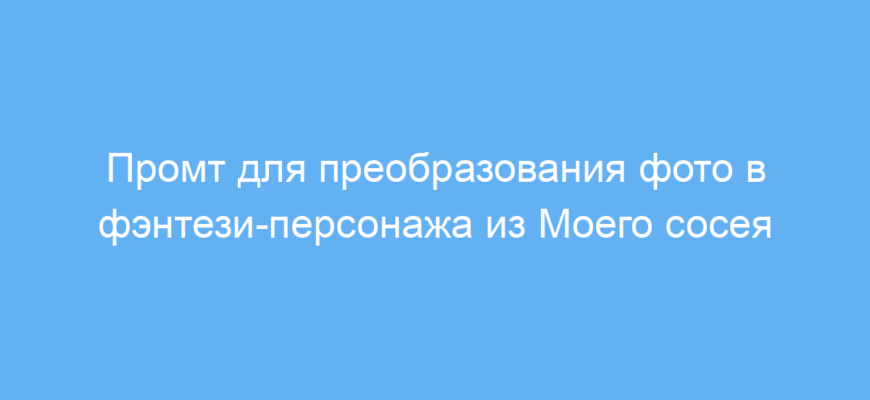 Использовать такой промт просто и удобно — он экономит время на создание сложного фэнтези-образа. Позволяет быстро получить оригинальные визуальные эффекты, соответствующие стилистике «Моего сосея» с мистической атмосферой. Это эффективный инструмент для творческих проектов, где важна атмосфера и детализация образа.