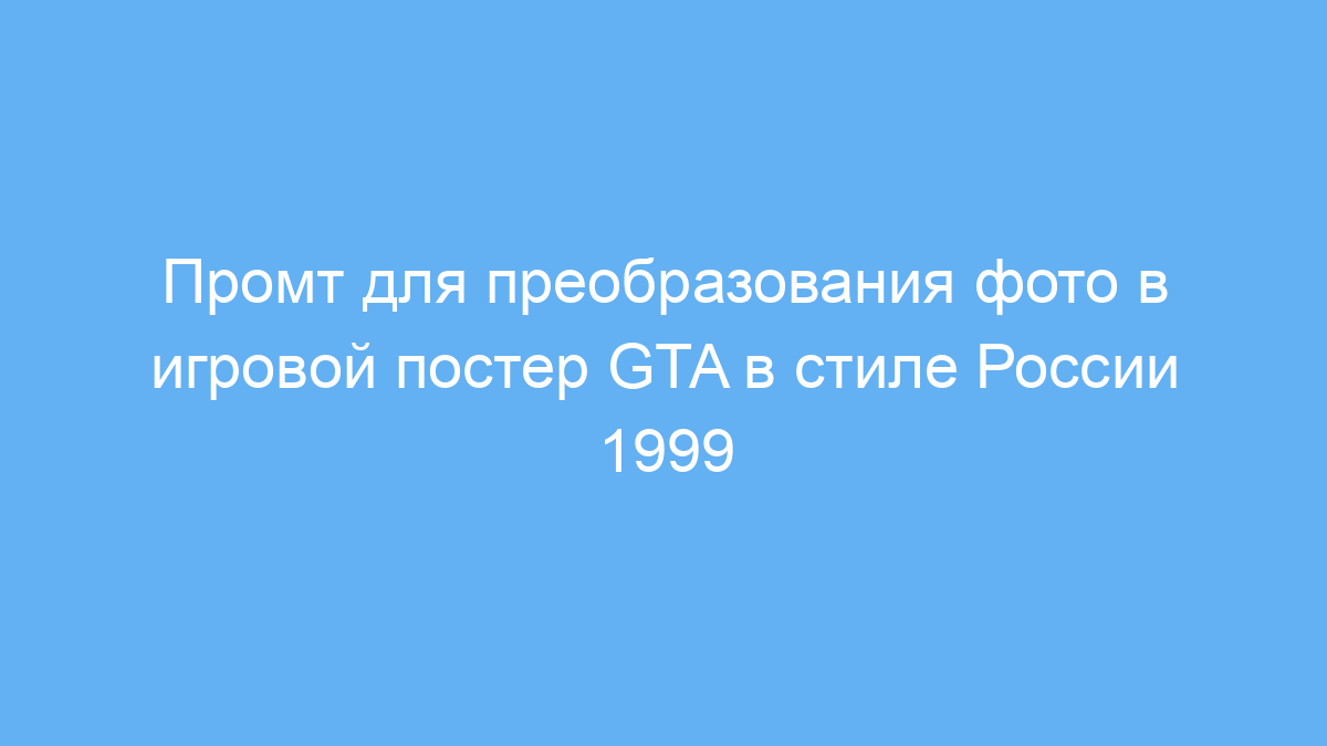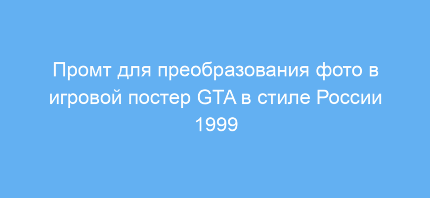 Данный промт экономит время на создание яркого, тематически верного арт-образа для проектов, связанных с эпохой 90-х в России. Он помогает добиться нужной атмосферы и стиля GTA с минимальными усилиями, что полезно и художникам, и маркетологам, и блогерам.