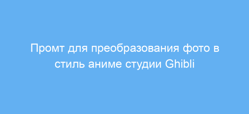 Данный промт экономит ваше время и силы, быстро превращая обыденные фото в уникальные аниме-иллюстрации в стиле Ghibli с магической атмосферой. Это отличное решение для творческих проектов, визуальных историй и вдохновения.
