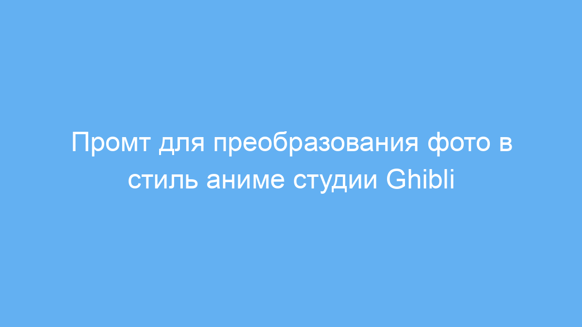 Этот промт создан для тех, кто хочет превратить обычное фото в изображение в стиле знаменитой японской анимационной студии Ghibli. Особенно он полезен художникам, дизайнерам и любителям аниме, которые стремятся получить атмосферные, фантазийные картинки с волшебством и загадочностью. Такой промт позволяет быстро трансформировать изображения в уникальный художественный стиль, экономя время на ручной обработке и вдохновляя на творчество.