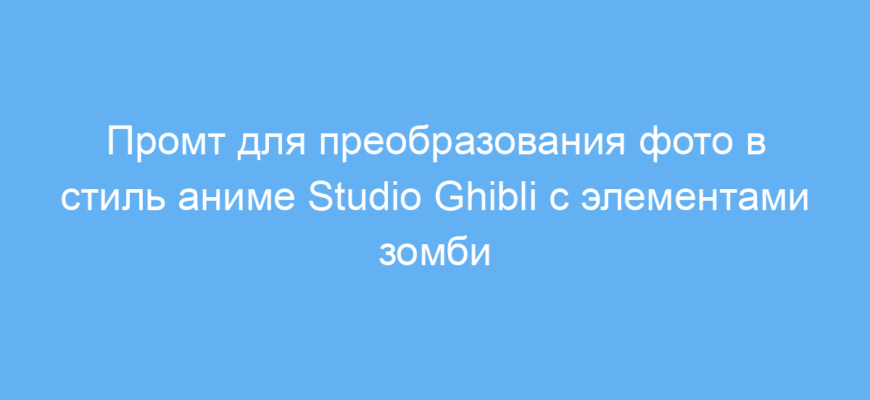 Промт работает путем конкретизации желаемых элементов изображения: стиль аниме Studio Ghibli добавляет мягкие линии и насыщенные цвета, элементы зомби привносят чувство постапокалипсиса, атмосфера ретро создает особое настроение, а фон из заросших тропических руин добавляет глубину и контекст. Нейросеть обрабатывает фотографию, подстраивая ее под эти требования для создания уникального результата.