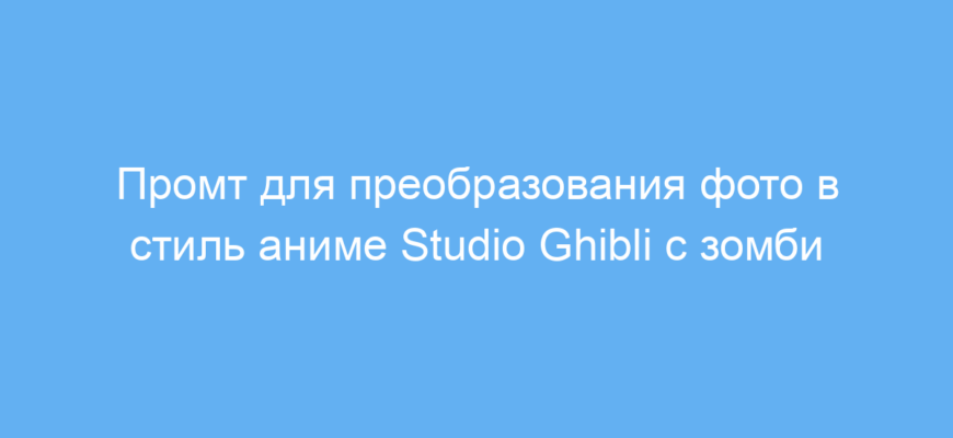 Этот промт экономит время и силы, позволяя быстро создать уникальное изображение в узнаваемом стиле Studio Ghibli с интересной тематикой зомби и постапокалиптическим фоном. Он поможет вдохновить на новые творческие проекты, визуализации и даже маркетинговые материалы.