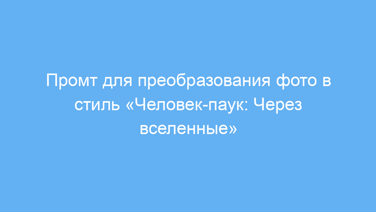 Промт работает так: он задает нейросети конкретные стилистические параметры — комиксные эффекты, мультипликационную анимацию и визуальный стиль фильма. В результате нейросеть генерирует обработанное изображение с характерными яркими цветами, текстурами и динамикой, свойственной мультфильму о Человеке-пауке.