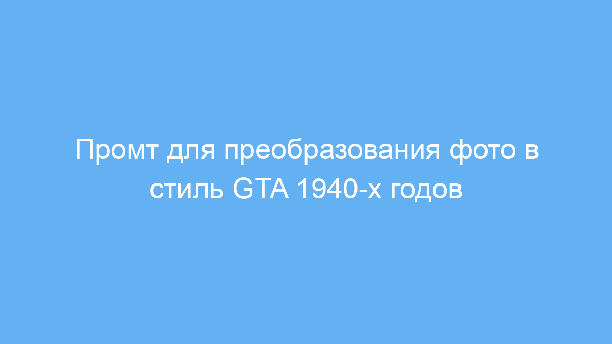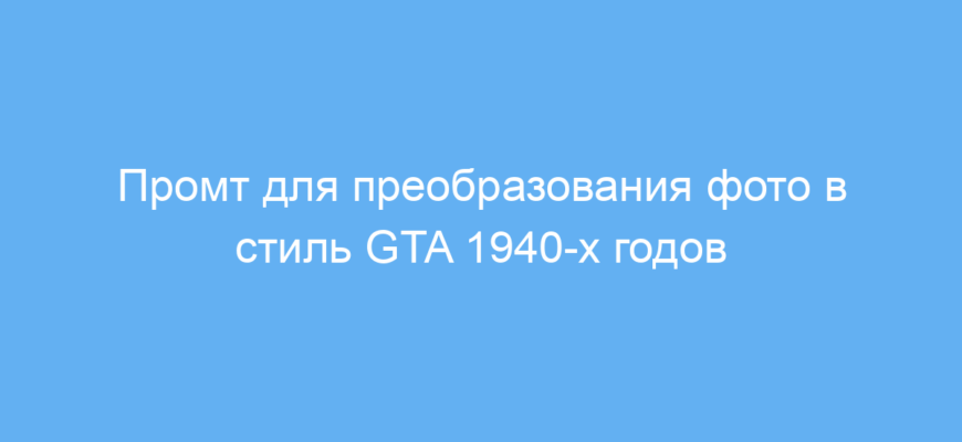Этот промт создан для тех, кто хочет быстро и красиво преобразить свои фотографии, придав им вид классического игрового постера в стиле Grand Theft Auto. Особенно он полезен дизайнерам, иллюстраторам и авторам контента, желающим получить эффект нуара 1940-х годов с гангстерской атмосферой.
