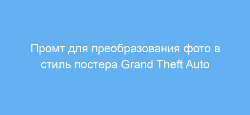 Промт помогает решить задачу превращения обычной фотографии в атмосферный арт с характерными особенностями GTA: яркие контуры, стилизованные персонажи и специфический фон с элементами того времени – шоссе, заправка, детали из эпохи 50-х. Это облегчает работу, так как отпадает необходимость самому разрабатывать сложный художественный стиль или нанимать художника.