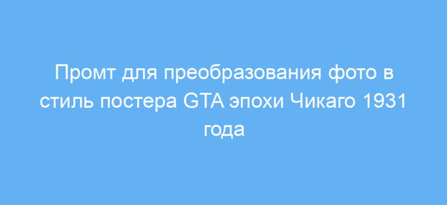 Этот промт предназначен для тех, кто хочет быстро и легко преобразовать обычную фотографию в уникальное арт-изображение в стиле игровой серии Grand Theft Auto, в частности с атмосферой 30-х годов Великой депрессии в Чикаго. Он полезен дизайнерам, блогерам, геймерам и любителям творчества, которым важно получить качественный нестандартный визуал без глубоких знаний в графическом редакторе.