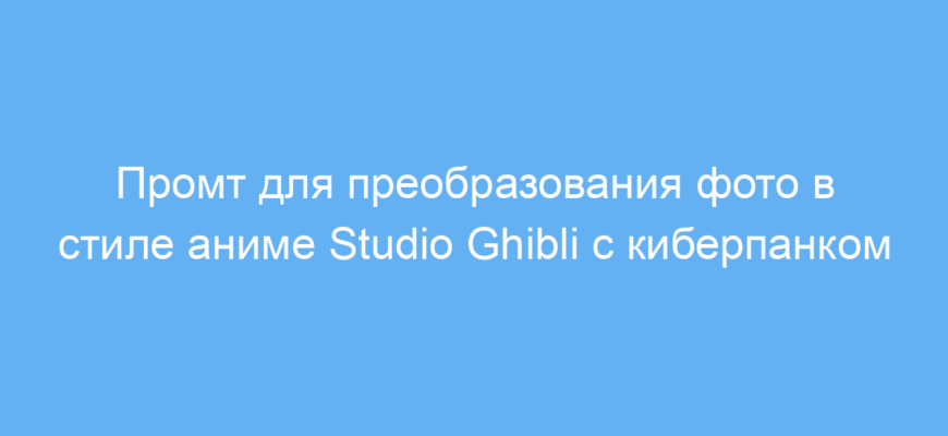 Промт работает так: нейросеть берет исходную фотографию и применяет к ней стилистические и тематические трансформации. Она комбинирует мягкие и теплые цвета Studio Ghibli с техническими и футуристическими деталями киберпанка, а также добавляет атмосферу звездолетной, чуть ретро-футуристической обстановки. В итоге пользователь получает художественное изображение с заявленными характеристиками.