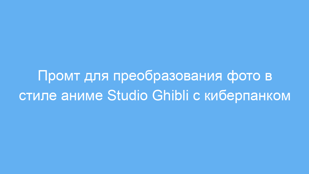 Использование данного промта экономит время и усилия на создание художественных трансформаций фотографий, объединяя уникальный стиль Studio Ghibli и киберпанк в одном изображении. Это удобный инструмент для быстрого генерации оригинального визуала с тематической атмосферой и деталями, которые сложно воспроизвести вручную.