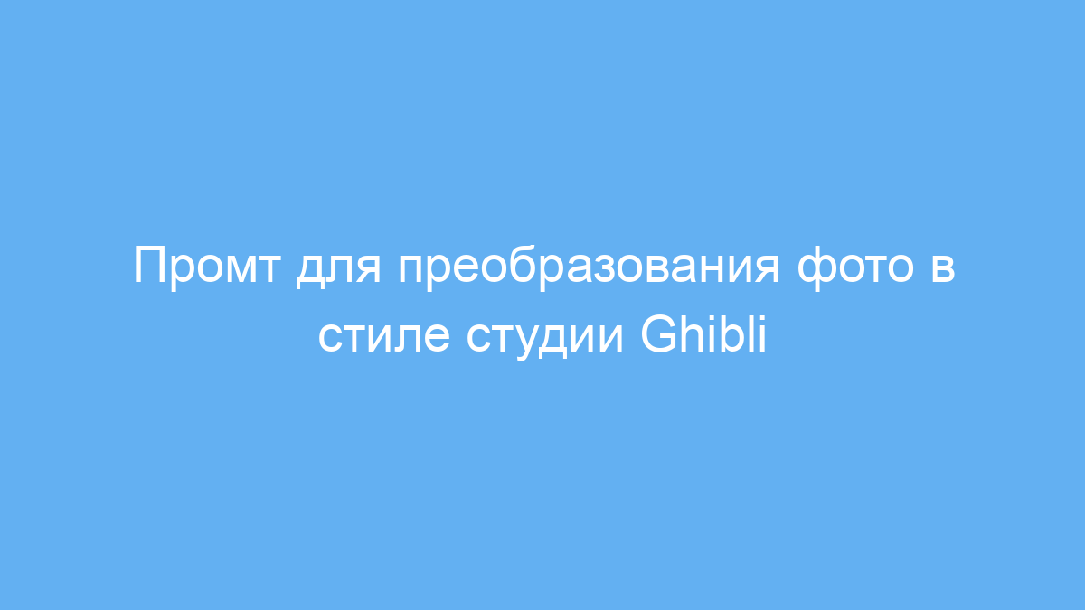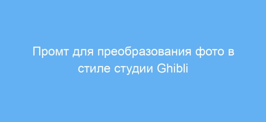Этот промт предназначен для пользователей нейросетей, желающих быстро и качественно преобразовать загруженное фото в уникальный художественный стиль студии Ghibli. Особенно полезен иллюстраторам, дизайнерам, блогерам и всем, кто хочет добавить волшебную атмосферу своим изображениям.