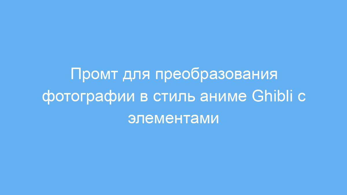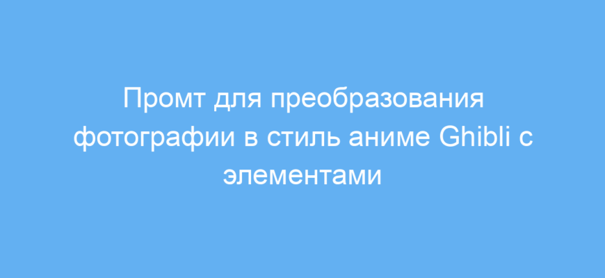 Этот промт значительно упрощает создание художественных изображений в уникальном смешанном стиле аниме Ghibli с элементами зомби и ретро-атмосферой. Он помогает быстро оформить фотографии для творческих проектов, не требуя специальных навыков рисования. Вы экономите время и получаете удивительные визуальные эффекты, которые сложно создать вручную.