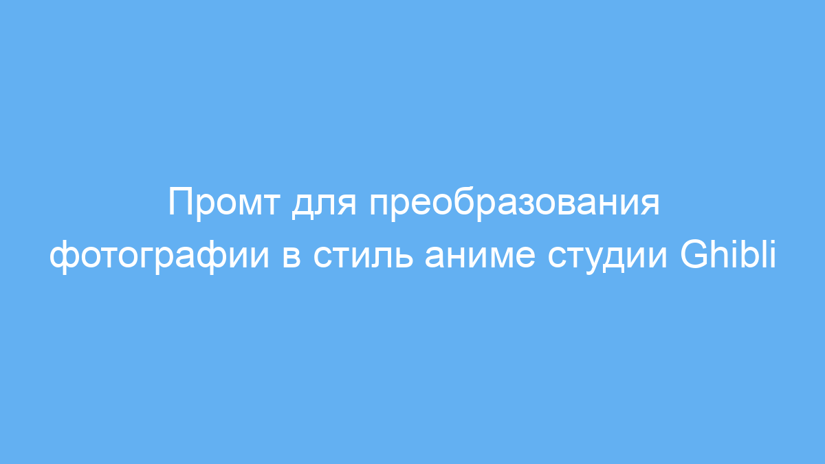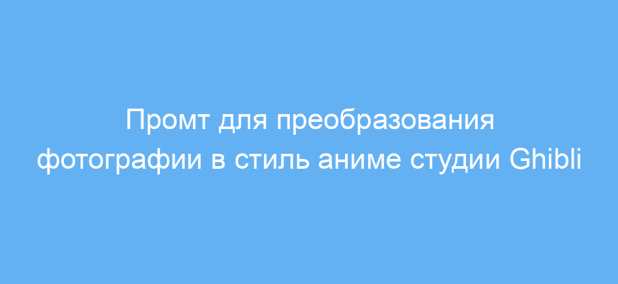 Этот пример поможет сделать атмосферный арт для личного блога или обложки творческого проекта. Промт добавит нужные детали и стиль Ghibli.