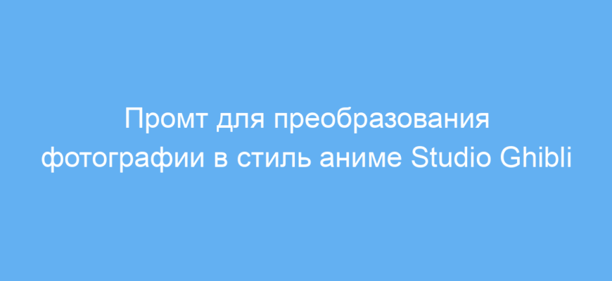 Промт помогает решить задачу быстрого стилизации фотографий с помощью нейросетей, позволяя без специальных навыков получить качественный художественный результат. Он автоматически изменяет визуальные элементы снимка, придавая ему характерные черты анимации и атмосферу загадочного тропического острова — популярную тематику у Studio Ghibli.