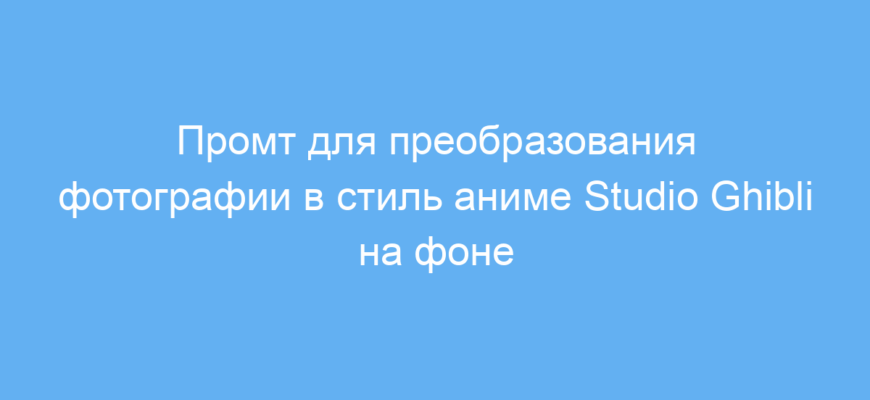 Работает промт через нейросетевые модели, которые анализируют исходную фотографию, стилизуют её в аниме-манере Studio Ghibli и добавляют выбранный фон. Итоговое изображение объединяет реалистичные черты с искусственным стилистическим оформлением и контекстом эпохи СССР.