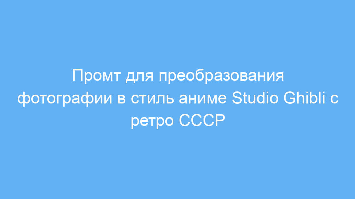 Использование этого промта позволяет быстро и эффективно преобразить обычные фотографии в уникальные произведения искусства, сочетающие популярный стиль аниме Studio Ghibli с колоритом советской эпохи. Это экономит время на создание визуального контента и помогает выделиться с помощью оригинального стиля.
