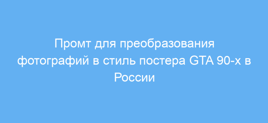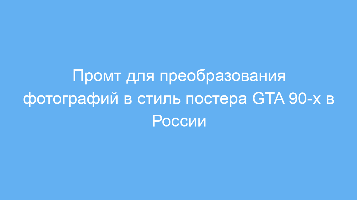 Этот промт предназначен для тех, кто хочет быстро и эффектно преобразовать обычные фотографии в графику, напоминающую стиль культовых постеров игры Grand Theft Auto, адаптированных под атмосферу России 1993 года и эпохи 90-х. Особенно актуален он для дизайнеров, блогеров и маркетологов, желающих создавать ностальгические изображения с узнаваемой стилистикой GTA и локальными историческими элементами, такими как Волгоград того времени.