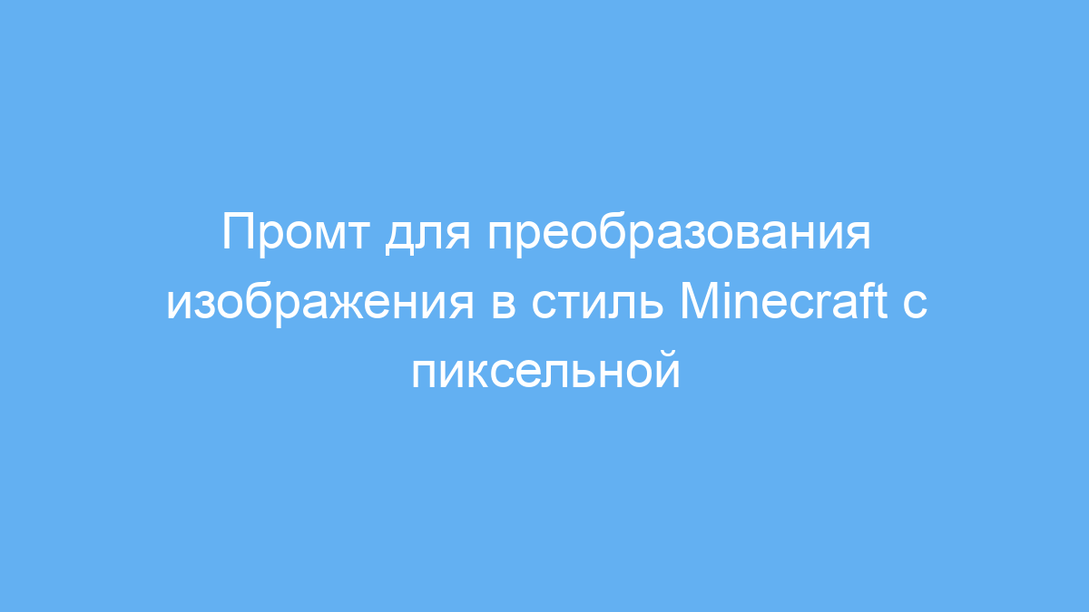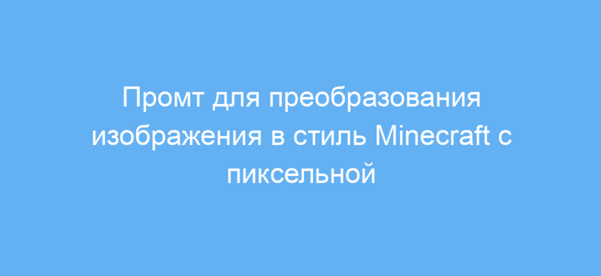 Промт работает с нейросетью, которая по загруженной фотографии восстанавливает объекты и детали в стиле Minecraft, применяя кубическую геометрию и пикселизацию. Пользователь может указать желаемый фон (биом), что добавляет дополнительную атмосферу и позволяет подстроить итог к тематике.