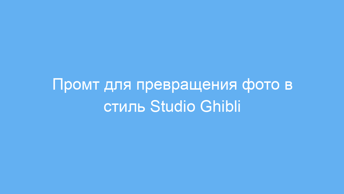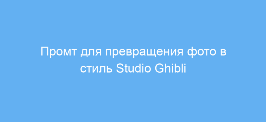 Использование этого промта позволяет быстро преобразовать фотографию в уникальное художественное изображение в стиле Studio Ghibli. Это экономит время на ручной обработке и даёт возможность получить атмосферный визуал без специальных навыков в рисовании или дизайне.