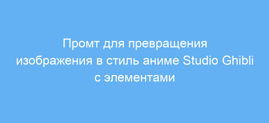 Использование этого промта экономит время на ручную обработку, позволяя получить стилизованный арт с помощью нейросети. Он применяет заданные параметры, чтобы передать уют, магию и дух приключений, присущие аниме в духе Ghibli.