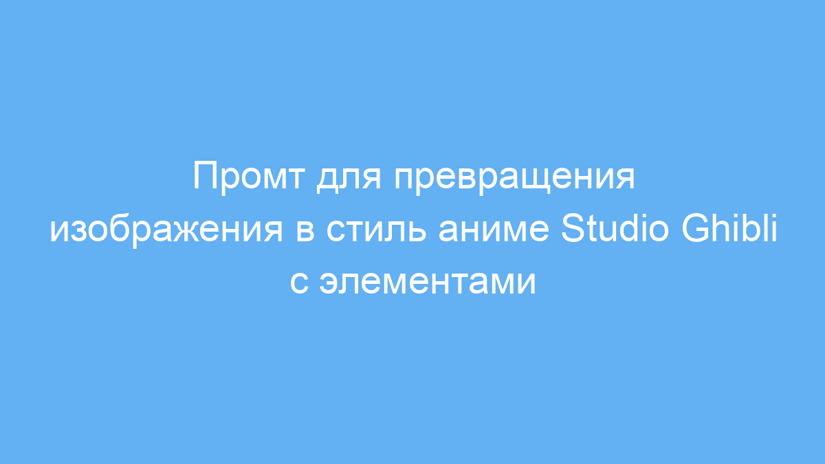 Этот промт значительно облегчает создание атмосферных и стилизованных изображений в духе Studio Ghibli. Он позволяет быстро получить качественный художественный результат с минимальными затратами времени и усилий, что полезно как для начинающих, так и для профессионалов.