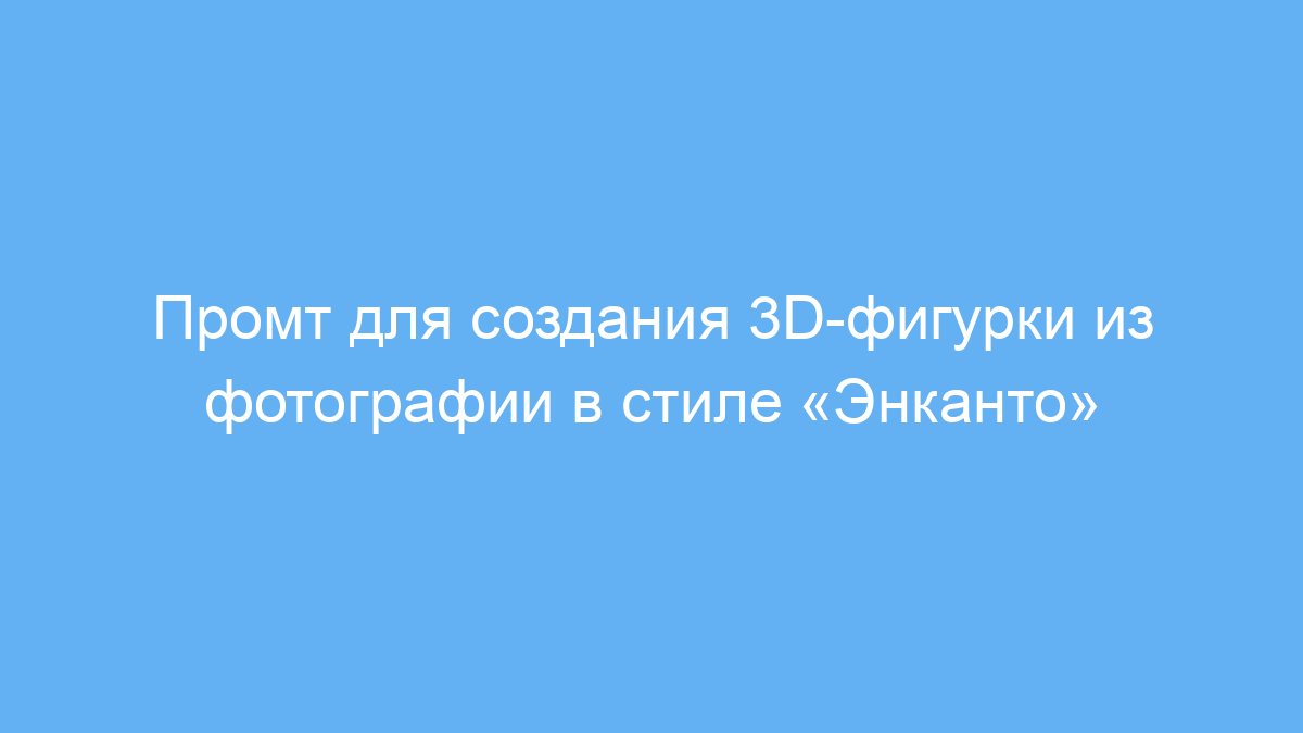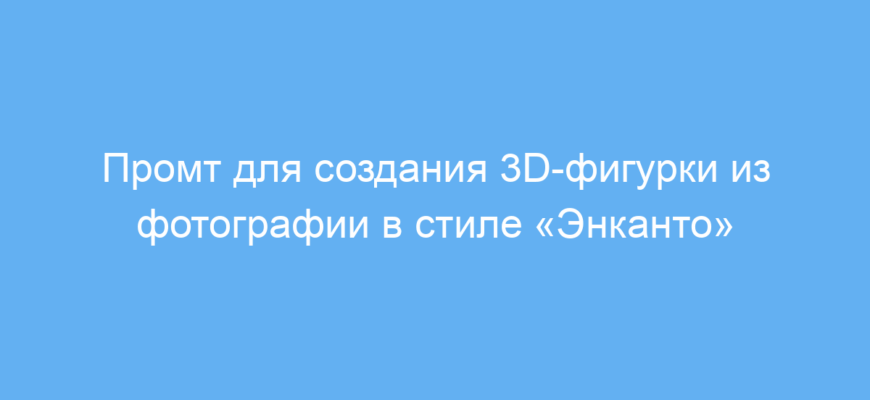 Этот промт предназначен для пользователей нейросетей, которые хотят получить 3D-модель пластиковой фигурки по своей фотографии, оформленную в стиле популярного мультфильма «Энканто». Он полезен для дизайнеров, создателей сувениров, маркетологов и любителей оригинальных подарков.