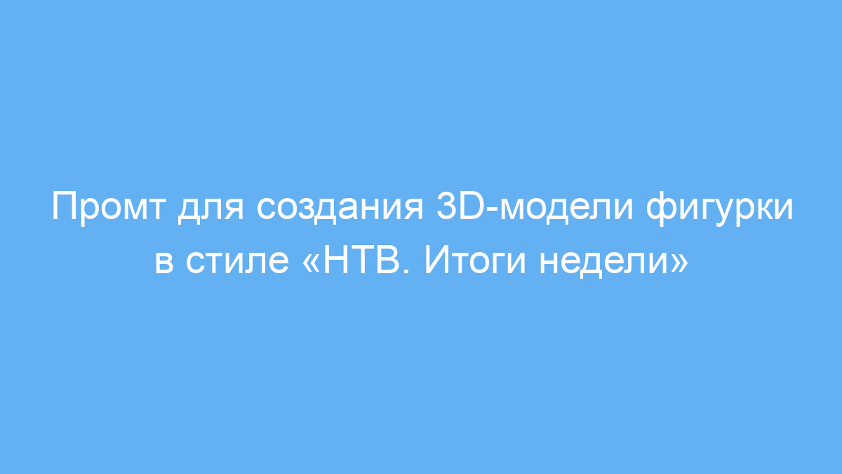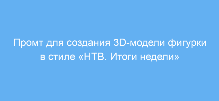 Этот промт предназначен для пользователей нейросетей, которые хотят быстро и качественно создать 3D-модель пластиковой фигурки на основе фотографии, оформленной в стиле телепрограммы «НТВ. Итоги недели». Он полезен дизайнерам, маркетологам и создателям контента, которым требуется уникальный объект с узнаваемой стилистикой новостной студии.