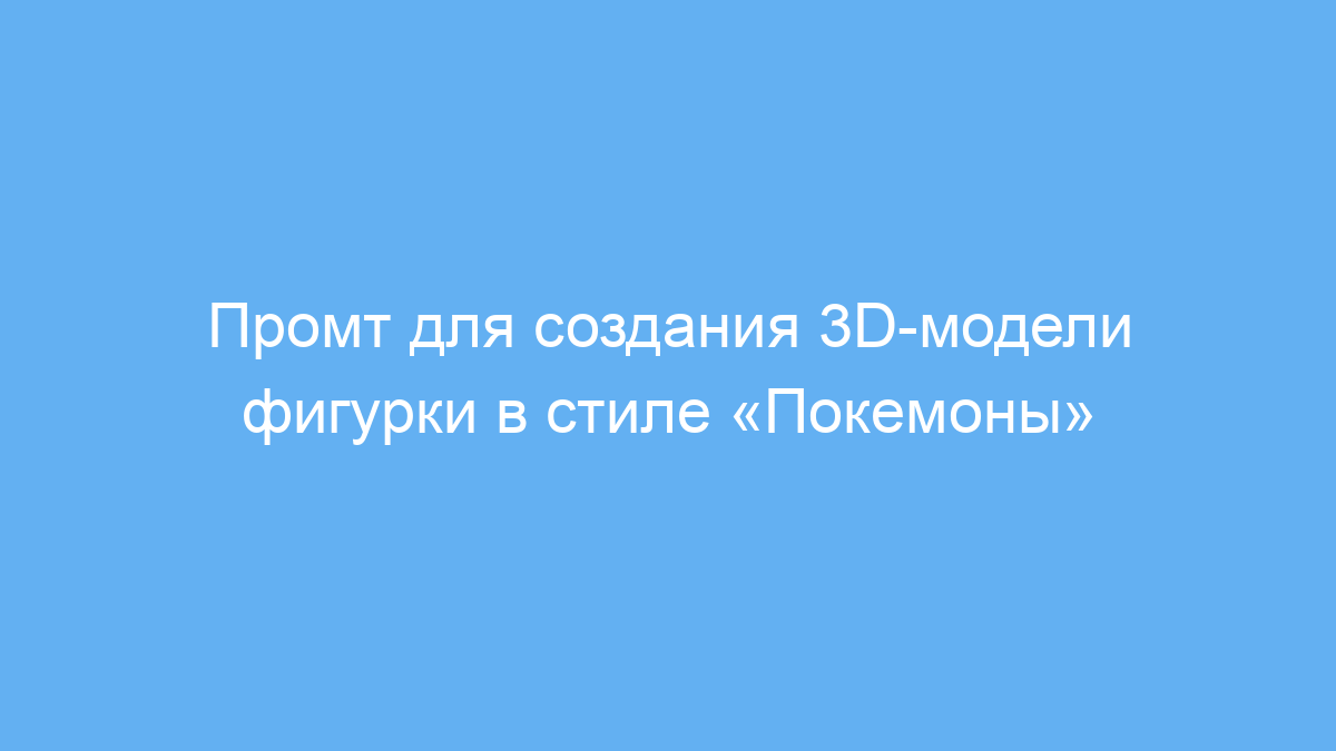 Этот промт предназначен для дизайнеров, 3D-модельеров, любителей анимации и всех, кто хочет быстро получить 3D-модель пластиковой фигурки в стиле «Покемоны» по фотографии. Он помогает автоматизировать процесс создания детализированной модели с дополнительными элементами в сцене, что экономит время и дает точный визуальный результат.