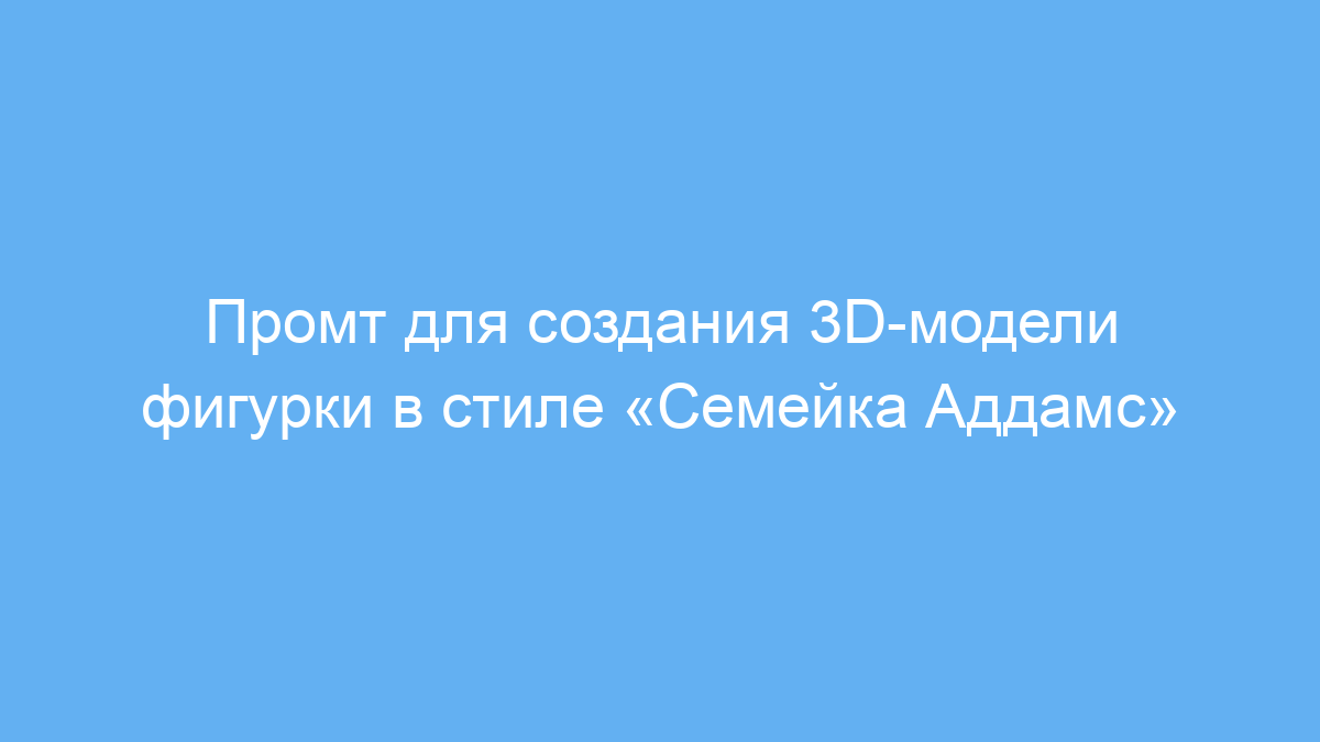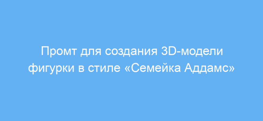 Этот промт предназначен для тех, кто хочет быстро и качественно получить 3D-модель пластиковой фигурки, стилизованной под мультфильм «Семейка Аддамс». Особенно полезен он дизайнерам сувениров, художникам 3D, а также любителям необычных декоративных объектов.