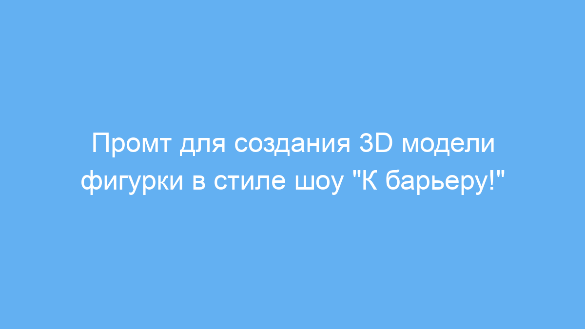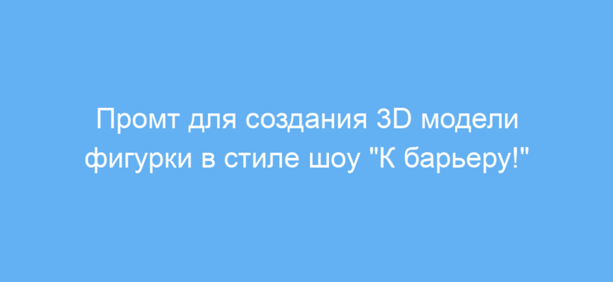 Этот промт предназначен для дизайнеров, 3D-моделеров и любителей создавать уникальные цифровые модели на основе фотографий. Если вы хотите быстро получить 3D модель пластиковой фигурки с ярким оформлением в стиле популярного теле-шоу «К барьеру!», этот промт поможет упростить задачу.