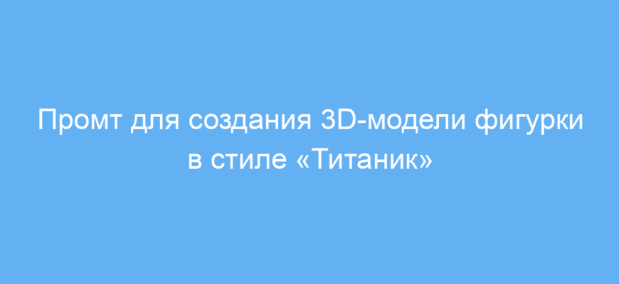 Промт решает задачи точного описания внешнего вида 3D-модели — от ракурса и цветовой гаммы до оформления упаковки и атмосферы. Такой подход экономит время на ручном подборе элементов и гарантирует стильный итоговый результат. При генерации учитываются ключевые объекты: фотоснимок для модели, светло-голубая коробка, с изображениями из «Титаника», что погружает в нужную тему.