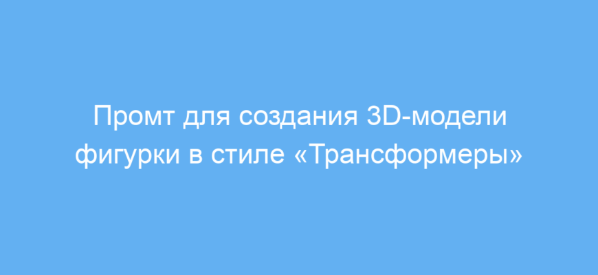 Промт задаёт точные параметры: модель размещается внутри металлической коробки в стиле популярных «Трансформеров» с фирменной эмблемой и дополнительными элементами, такими как мини-фигурки и энергетические кубы. Это позволяет добиться реалистичного и атмосферного результата без необходимости длительной ручной работы.