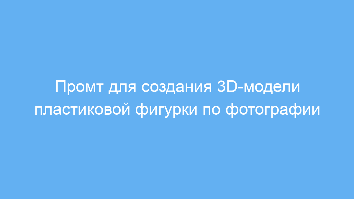 Этот промт упрощает создание качественных 3D-моделей пластиковой фигурки с нужной стилистикой и окружением. Он экономит время, помогая быстро получить реалистичный визуальный образ по фотографии без необходимости моделирования с нуля. Это полезно для презентаций, сувениров, оформления контента и промо-материалов.