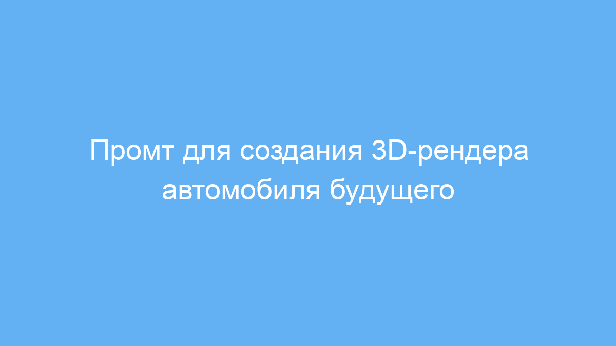 Этот промт предназначен для дизайнеров, иллюстраторов, маркетологов и всех, кто хочет быстро получить качественное изображение автомобиля будущего в 3D-стиле. Он помогает сгенерировать детализированный и реалистичный 3D-рендер с хромированными деталями, эффектами бликов и футуристическим фоном. Благодаря этому можно сократить время на поиск или самостоятельное создание сложной визуализации и сосредоточиться на творческой составляющей.